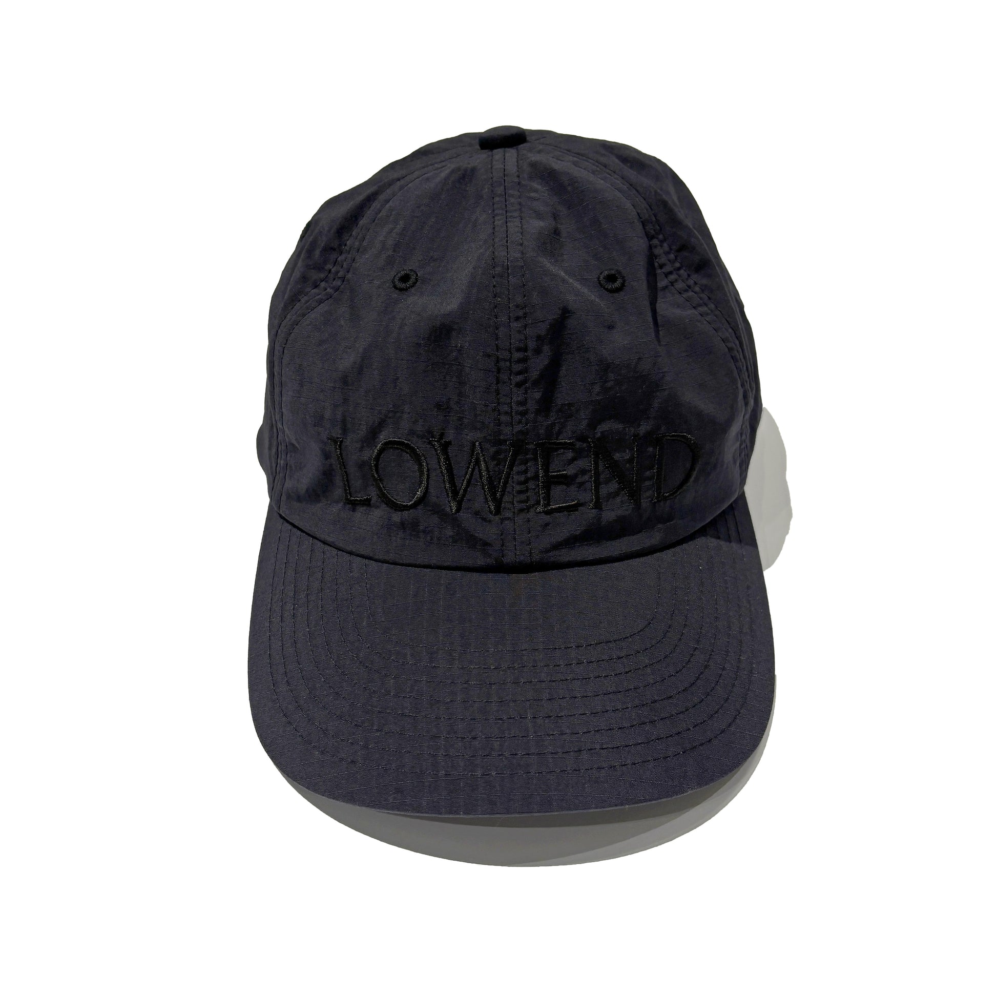 ベースラインなどの音楽における「低音域」や「ヒップ」を意味する『LOWEND』をフロントに配したGABAGEに特注した100%リサイクルナイロン製キャップ。