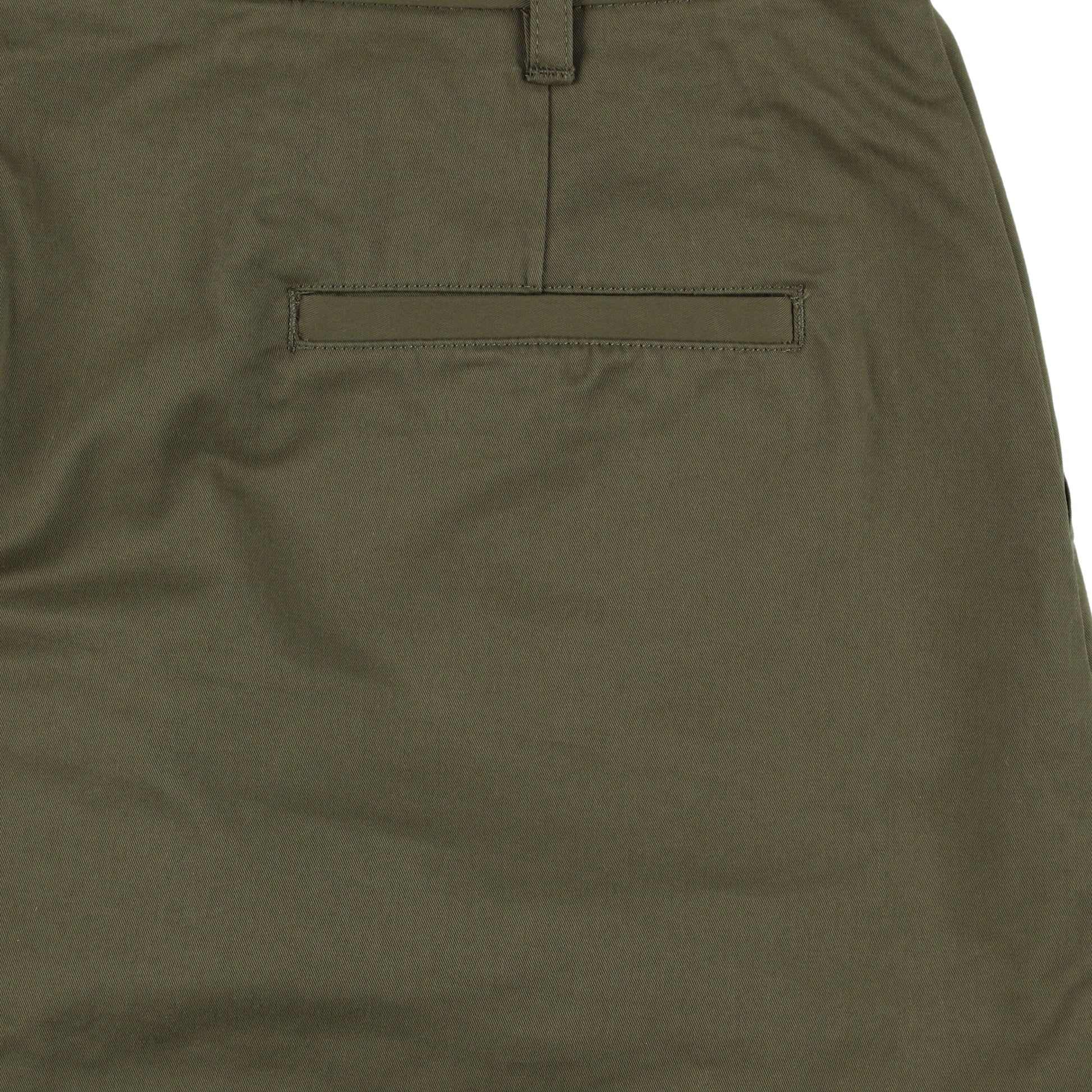 サイドにはボタン付きのフラップポケットを配し、裾にダブルステッチ使用。